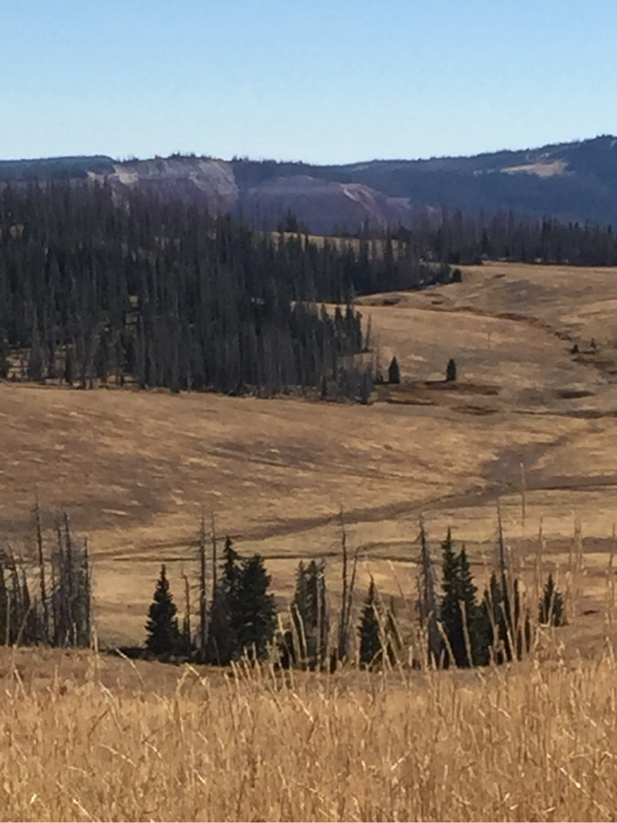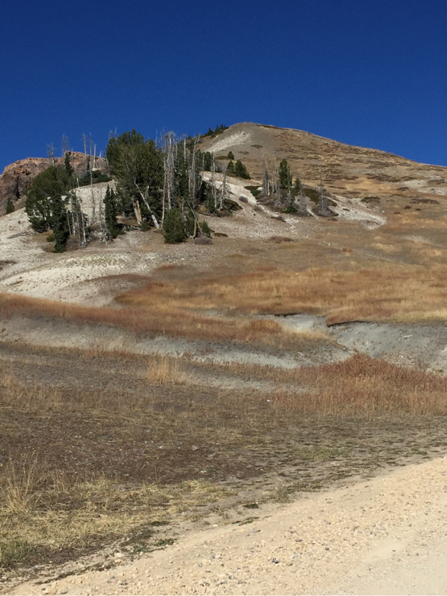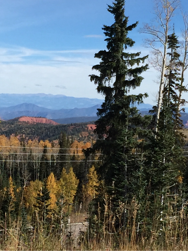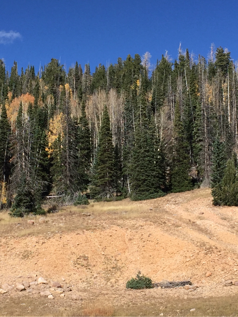 There are only three kinds of trees in these photos - spruce, fir, and the only trees of color are aspen trees. The dead trees are explained on the Dixie National Forest page.